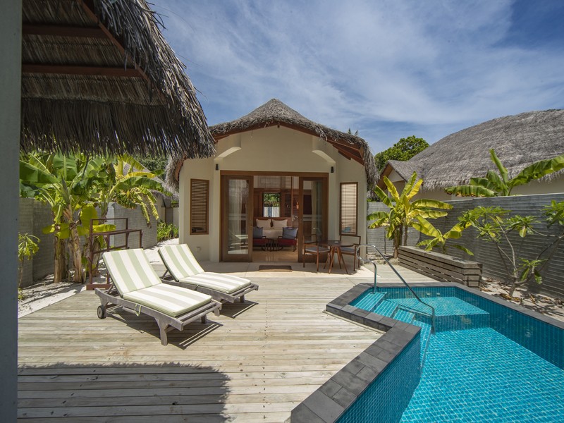 В отеле 168 роскошных вилл различных категорий. Просторные и комфортабельные виллы выполнены в современном мальдивском стиле и расположены в пышном тропическом саду, на белоснежном пляже и на сваях в лагуне.
